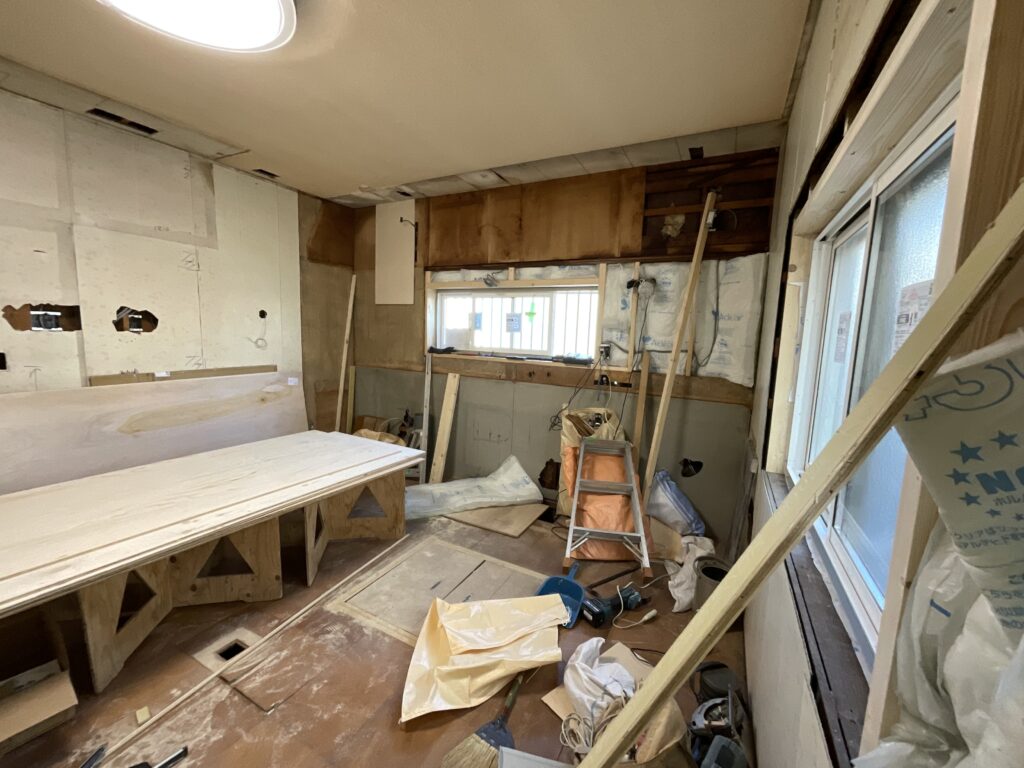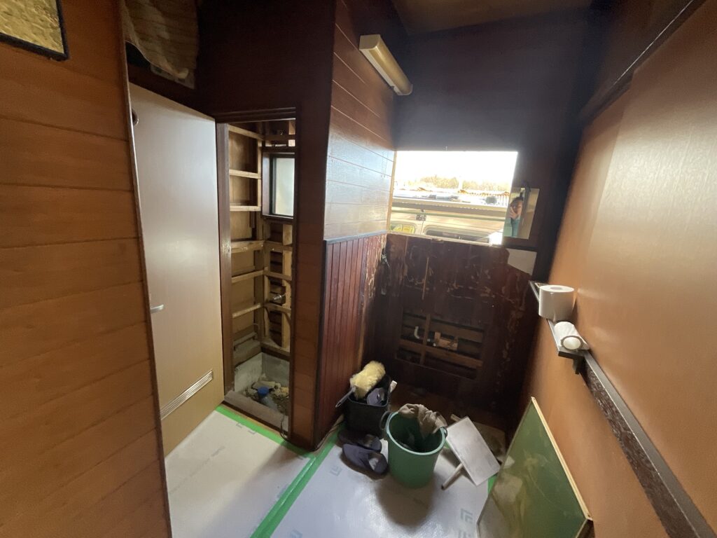 こちらは今年2番目の水廻り工事となりました。写真はトイレ、洗面所のリフォームです。始めはここだけのお話しだったのですが、結果的にサッシ9箇所、キッチン交換、一部耐震工事、他内装も加わり結果的にプチ総合リフォームとなりました。当社とは初めてのお客様です。来月2月に完成を予定しています。