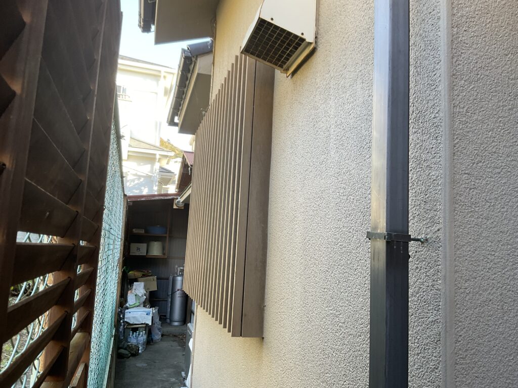 室内から見るとこんな感じです。ルーバーの羽根が半分ずつ調整出来ます。この写真の左側が全開で右半分が半開状態です。当社が浴室で良く使う物です。