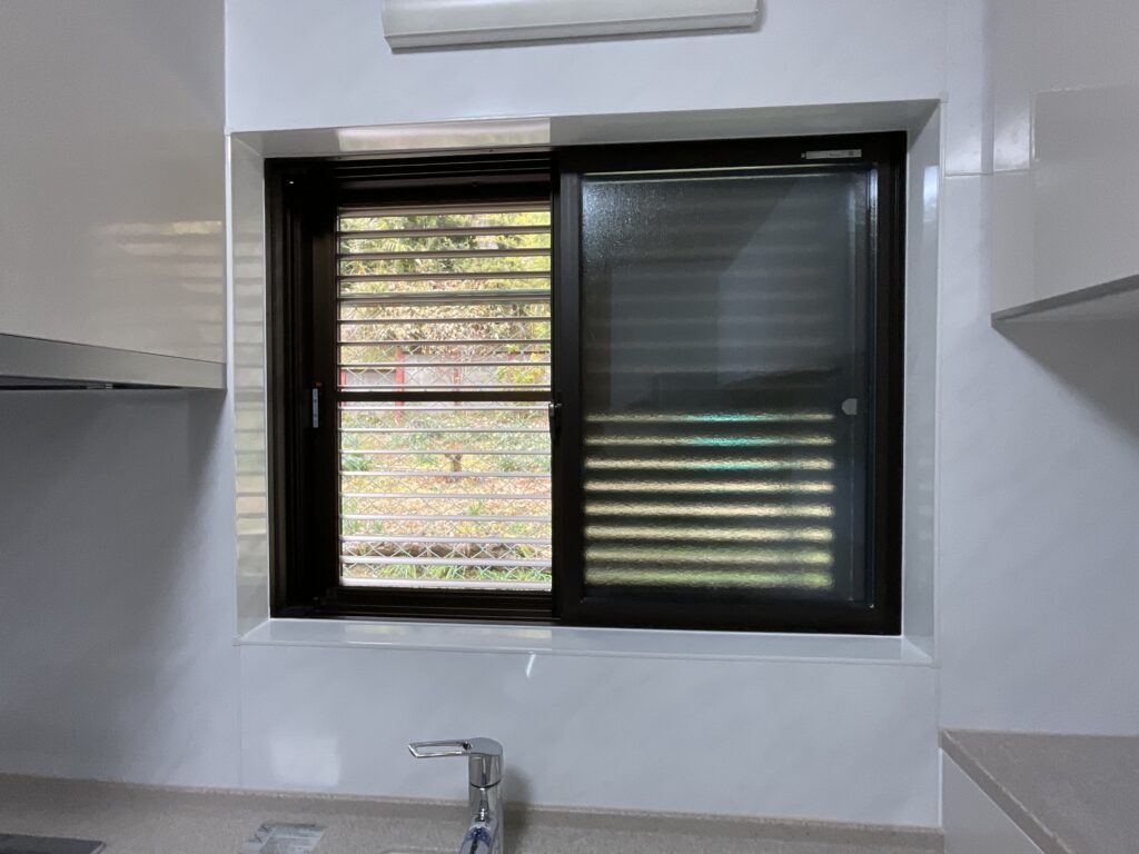 そしてサッシの工事後です。西陽が凄いと言う事でルーバー面格子を付けました。これで眩しい光を調整できます。