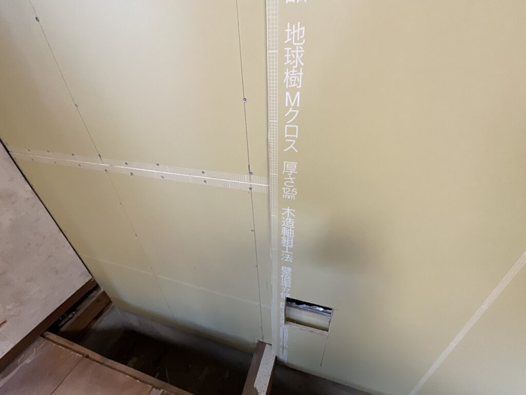 拡大するとこんな感じです。専用耐震パネルです。耐震パネルは色々な商品があります。大規模に行う耐震補強もありますが、こちらは一部分を耐震補強補強するプチ耐震工事です。これ結構人気あります耐震パネルだけでなく柱に補強金具を入れています。