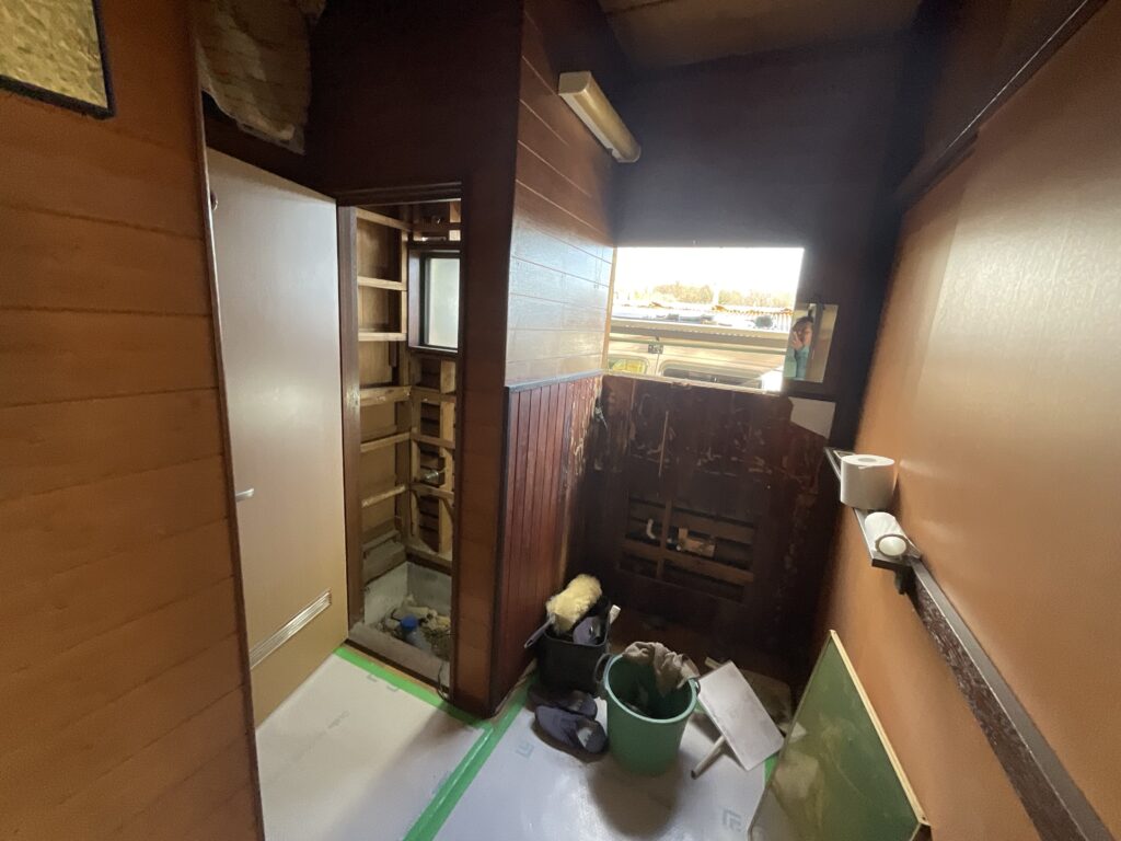 まずは解体しました、この間の壁を解体する案も考えましたがこの後各部屋のサッシ、キッチンリビングの工事もありますので現状の形で尚且つ使いやすく寒さも改善する様にしました。