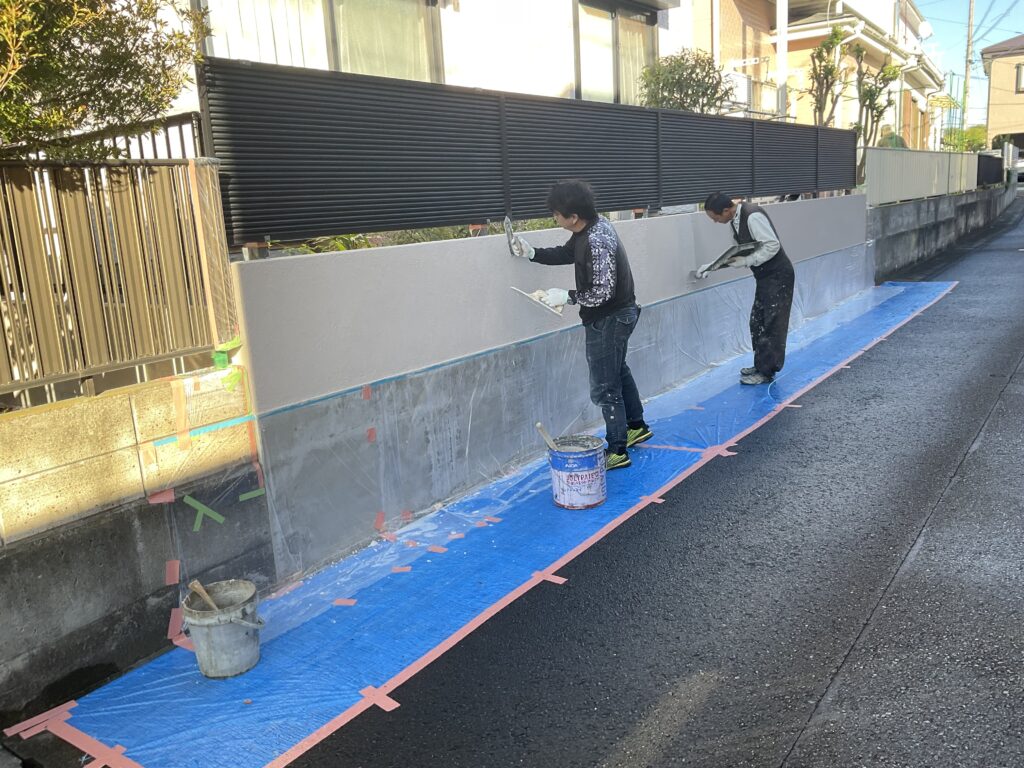大変ご無沙汰しております10月後半から激動の忙しさでした。今日は左官工事のお話し、写真は10年前に外壁塗装をして頂いたリピーターのお客様で今回は外構の塀を綺麗にしたいという事でご相談を受けました。