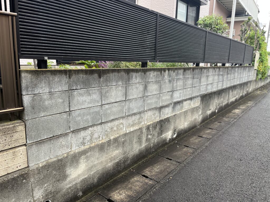 ブロック塀も月日が経てば汚れます。どう直すかを協議して基礎はモルタル、ブロックはジョリパットで塗ることに致しました