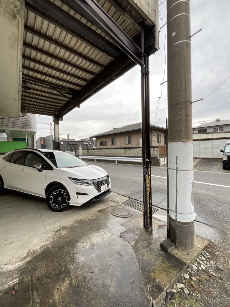 こちらは別の現場、白い車は私の車です。駆けつけると外のベランダに行ってる配管から水漏れです