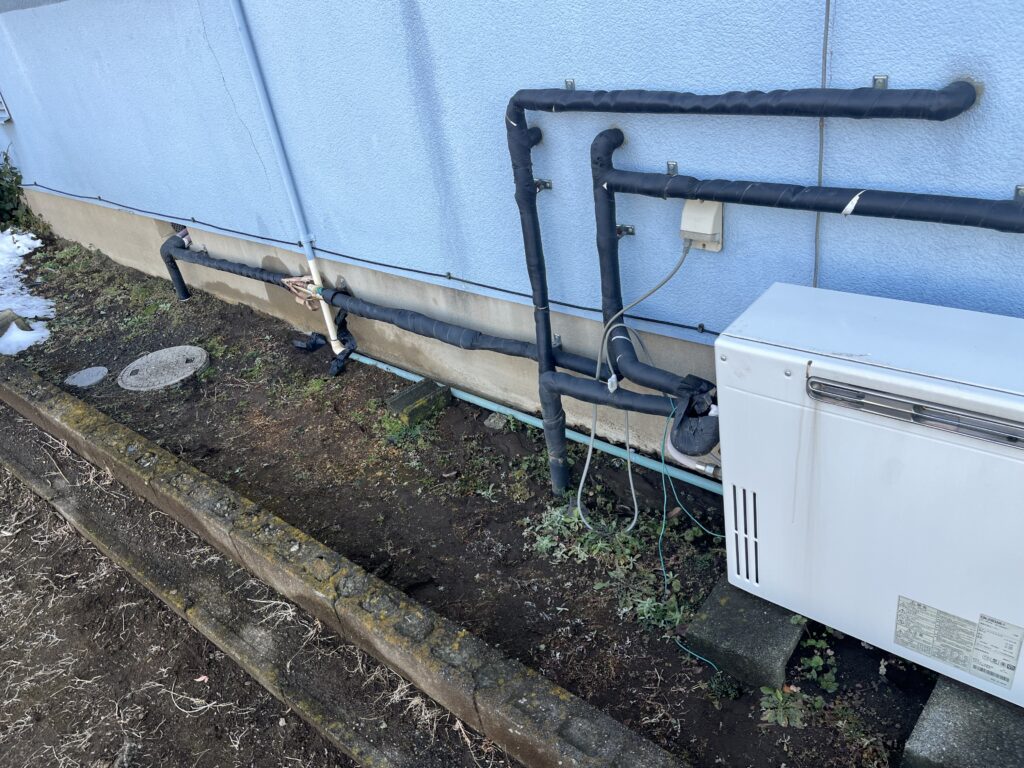 おはようございます。今日は建国記念日です。私は仕事です、先日の雪皆さん大丈夫でしたか?当社には数件の配管修理の依頼がありました。雪は大した事はなかったのですが冷え込んで配管が凍りパンクしてしまい大変でした。写真はリピーターの方で行ってみると外の配管から水漏れです